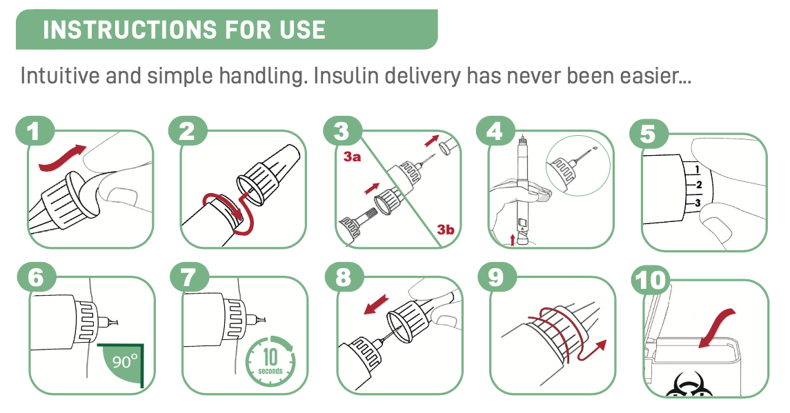 Pasują do wszystkich ogólnie dostępnych wstrzykiwaczy (penów) insulinowych, spełniają wymogi normy ISO 11608-2:2000