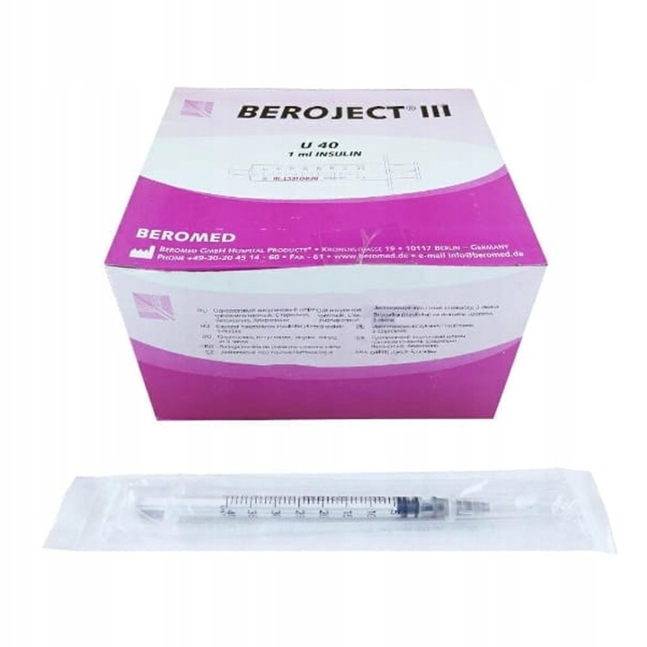 Strzykawki insulinowe z igłą U40 Beroject G27 1ml