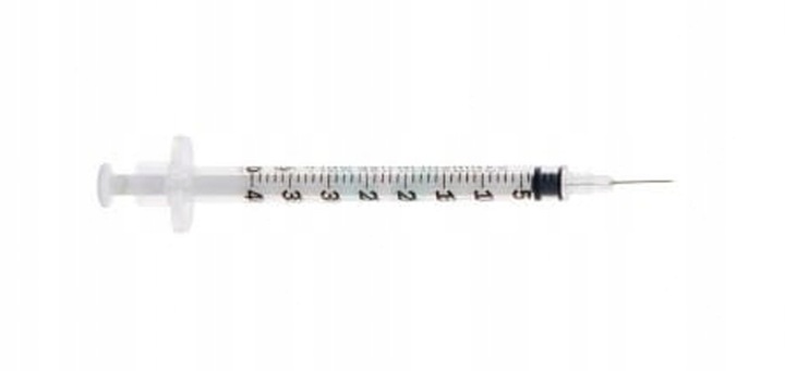 - jednorazowa, trzyczęściowa strzykawka insulinowa,